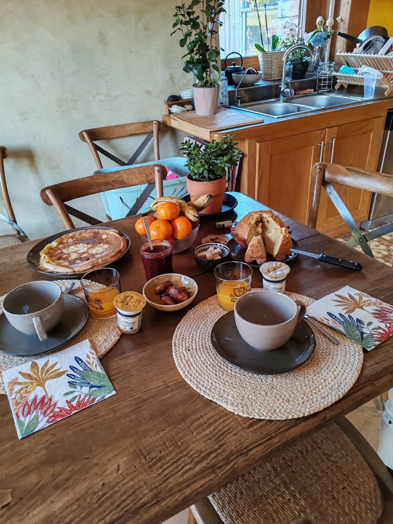 Chaque matin, Denise prépare un petit-déjeuner gourmand composé de produits frais et locaux : pain artisanal, confitures maison, fruits de saison, miel du pays… Un plaisir simple, à savourer en terrasse dans la lumière du matin.