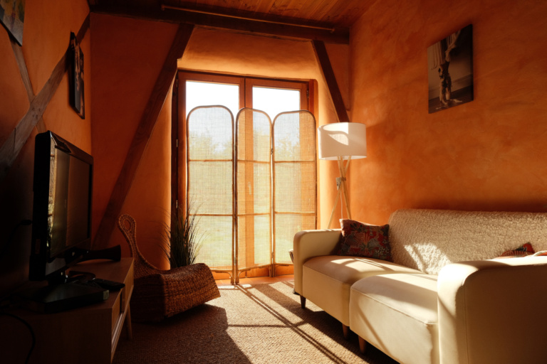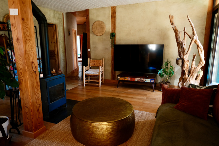Construite à partir de matériaux naturels tels que la chaux, la paille et la terre, elle incarne une philosophie de vie simple, écologique et tournée vers le bien-être. La fraîcheur naturelle des murs, la lumière douce et la sérénité du lieu créent un cadre propice à la détente.